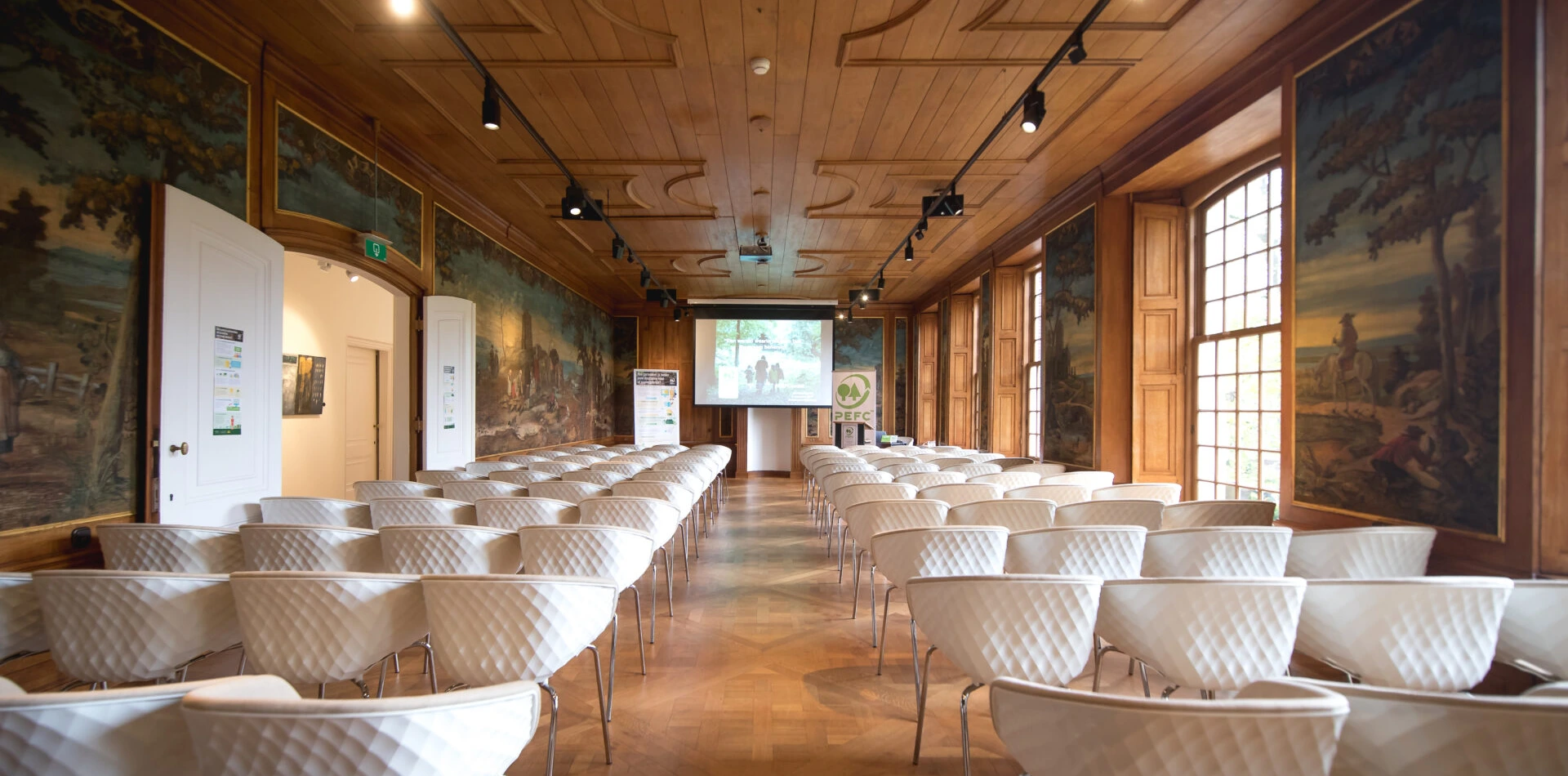 De verschillende gebouwen op de buitenplaats zijn allen ingericht met audiovisuele faciliteiten die het mogelijk maken een online of hybride evenement te organiseren. De entourage van het landgoed, ons steengoede personeel en culinaire invulling maken het ook voor fysieke gasten een onvergetelijke ontmoeting.