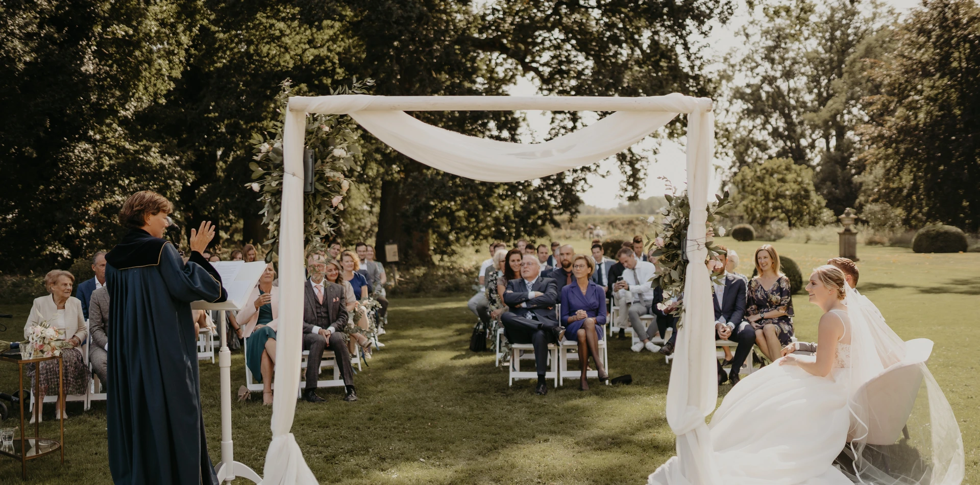 Extra leuk aan de backdrops is dat je ze gedurende de dag meerdere malen kan inzetten en verplaatsen zoals bijvoorbeeld voor tijdens de ceremonie, het fotomoment bij de borrel, als entree bij de feestlocatie en vervolgens weer als fotodecor bij het feest.
