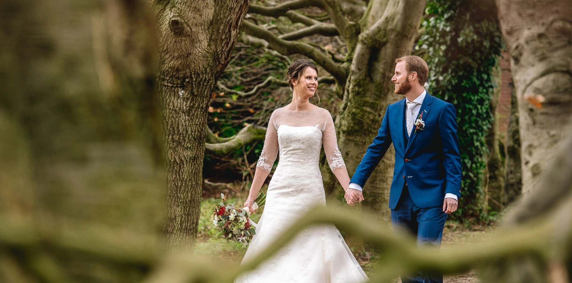 De keuze voor een winterbruiloft lag nog niet meteen vast. Annemarie: “We hadden vooraf nog niet besloten dat het een winterbruiloft zou worden, al sprak het winterarrangement ons wel aan. En toen we op Amerongen rondliepen zag ik het echt voor me: met de fakkels langs de oprijlaan en de gebouwen. Het was een gevoelskwestie, de uitstraling paste echt perfect bij hoe we het ons hadden voorgesteld.”