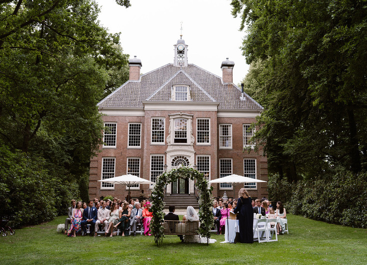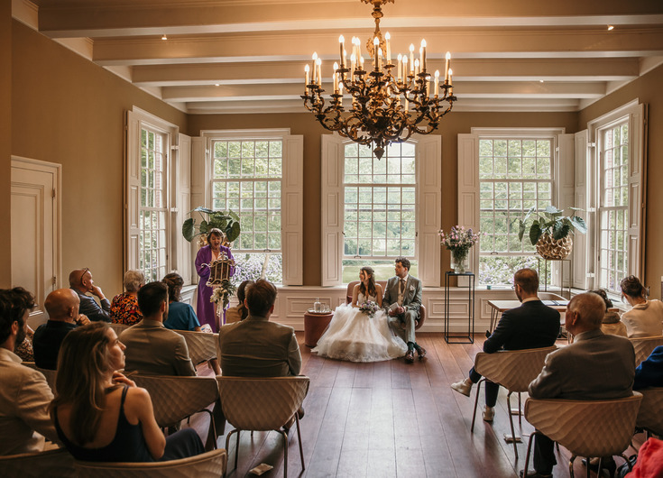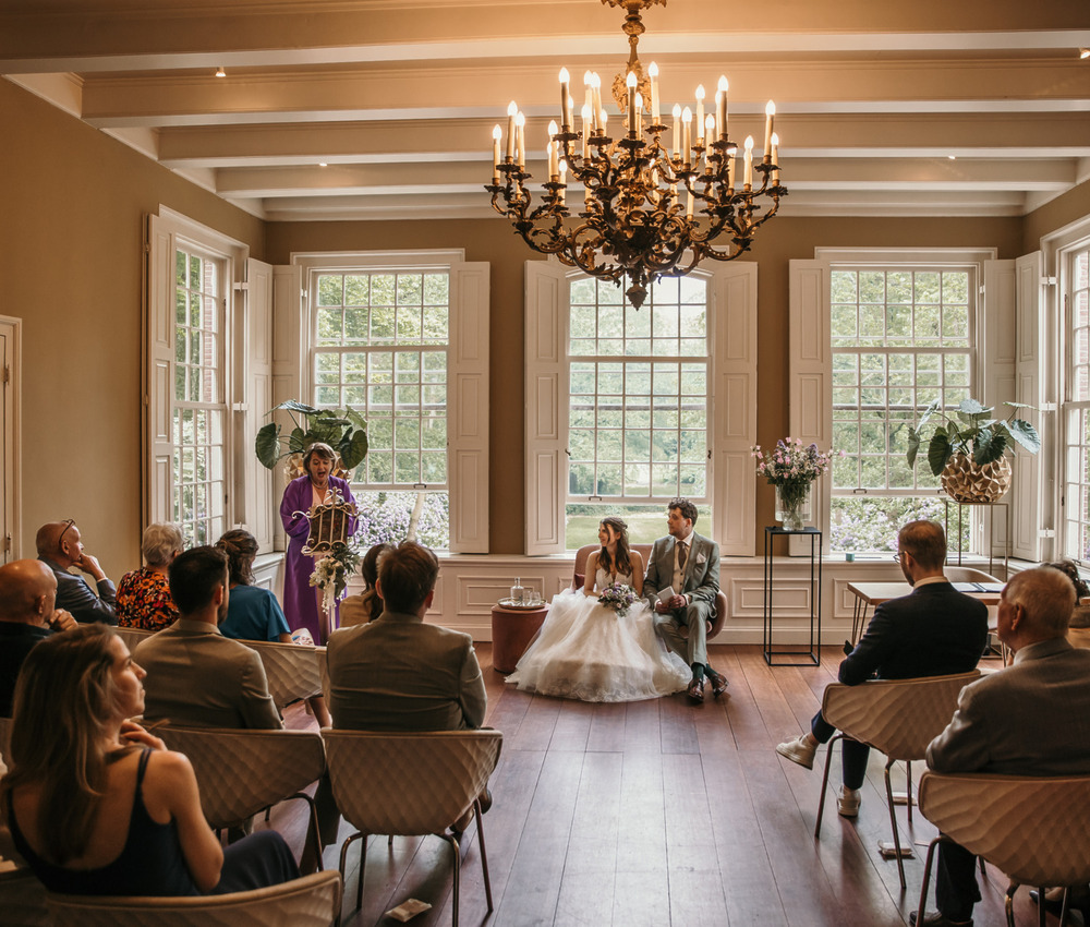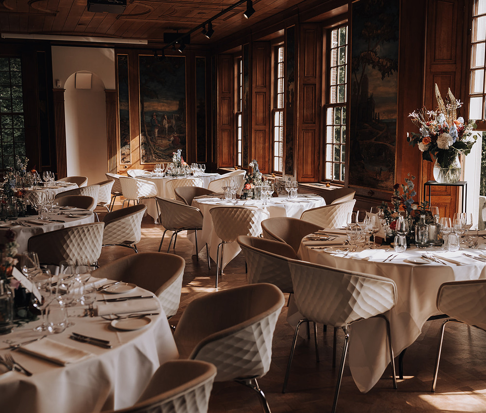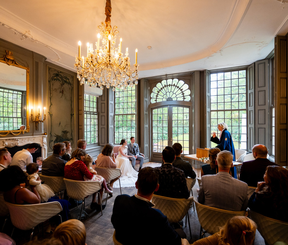 Of je er de dag nu mee begint of niet: het belangrijkste onderdeel van jullie bruiloft is de ceremonie. Het moment waarop jullie elkaar daadwerkelijk het ja-woord geven. De Salon biedt prachtig uitzicht over de parktuin, de Raadzaal is een sfeervolle ruimte waar meer gasten de ceremonie kunnen bijwonen en ook de Gouden kamer is favoriet. En bij mooi weer kan er natuurlijk buiten getrouwd worden. Oftewel, op Buitenplaats Sparrendaal trouwen biedt genoeg mogelijkheden!