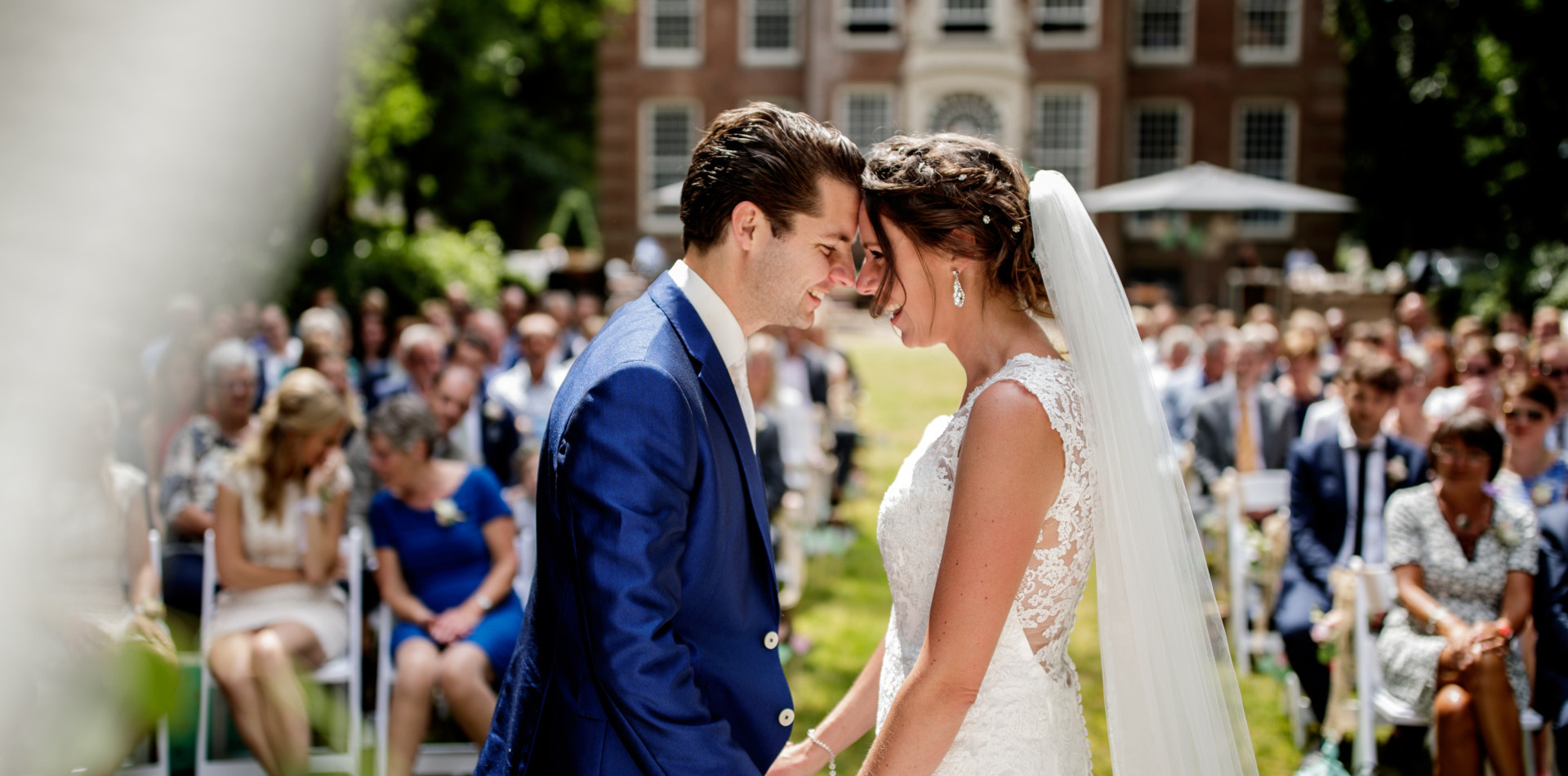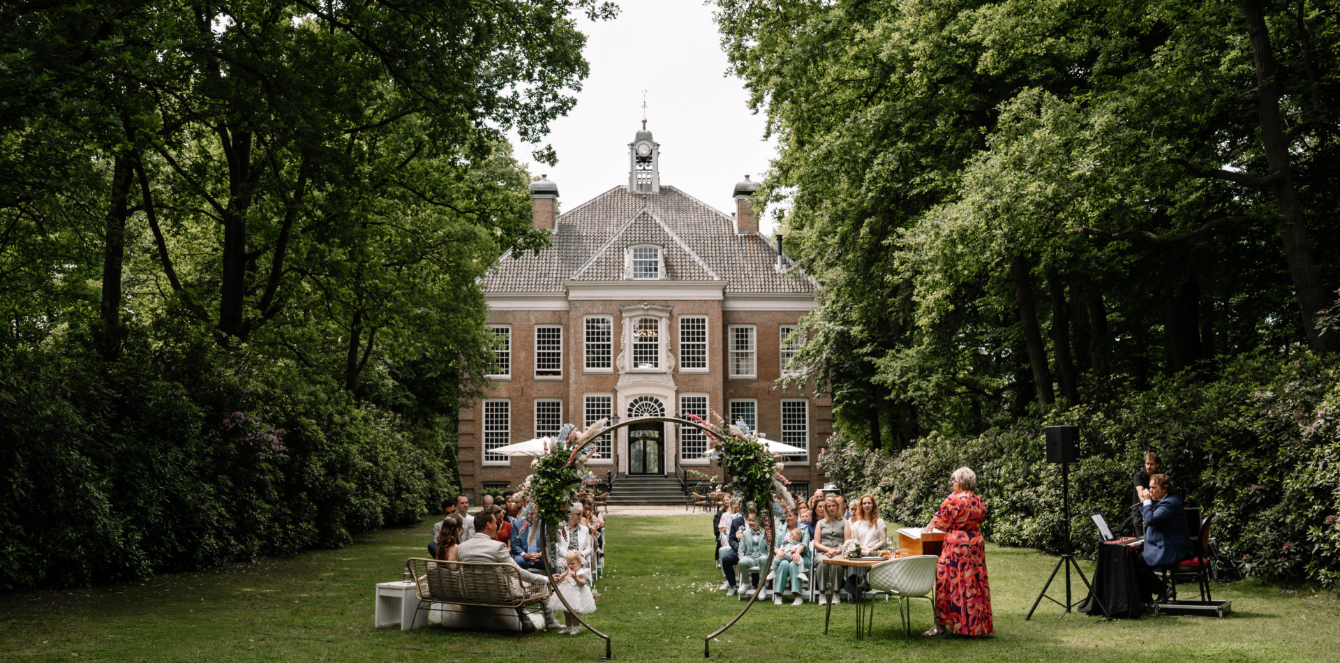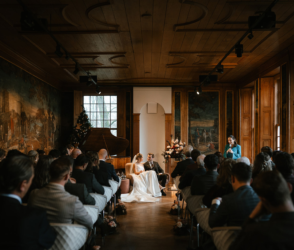 Of je er de dag nu mee begint of niet: het belangrijkste onderdeel van jullie bruiloft is de ceremonie. Het moment waarop jullie elkaar daadwerkelijk het ja-woord geven. De Salon biedt prachtig uitzicht over de parktuin, de Raadzaal is een sfeervolle ruimte waar meer gasten de ceremonie kunnen bijwonen en ook de Gouden kamer is favoriet. En bij mooi weer kan er natuurlijk buiten getrouwd worden. Oftewel, op Buitenplaats Sparrendaal trouwen biedt genoeg mogelijkheden!