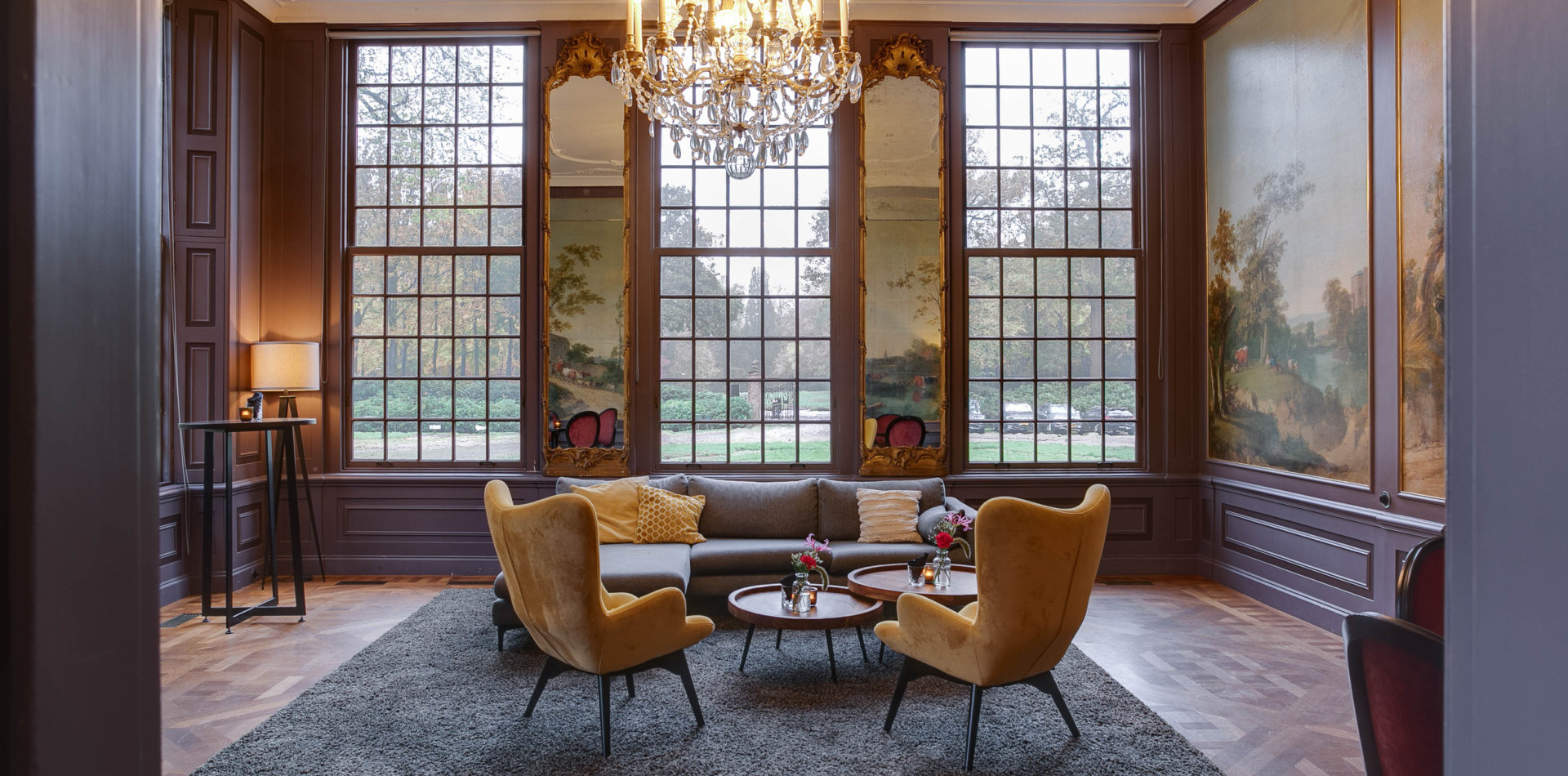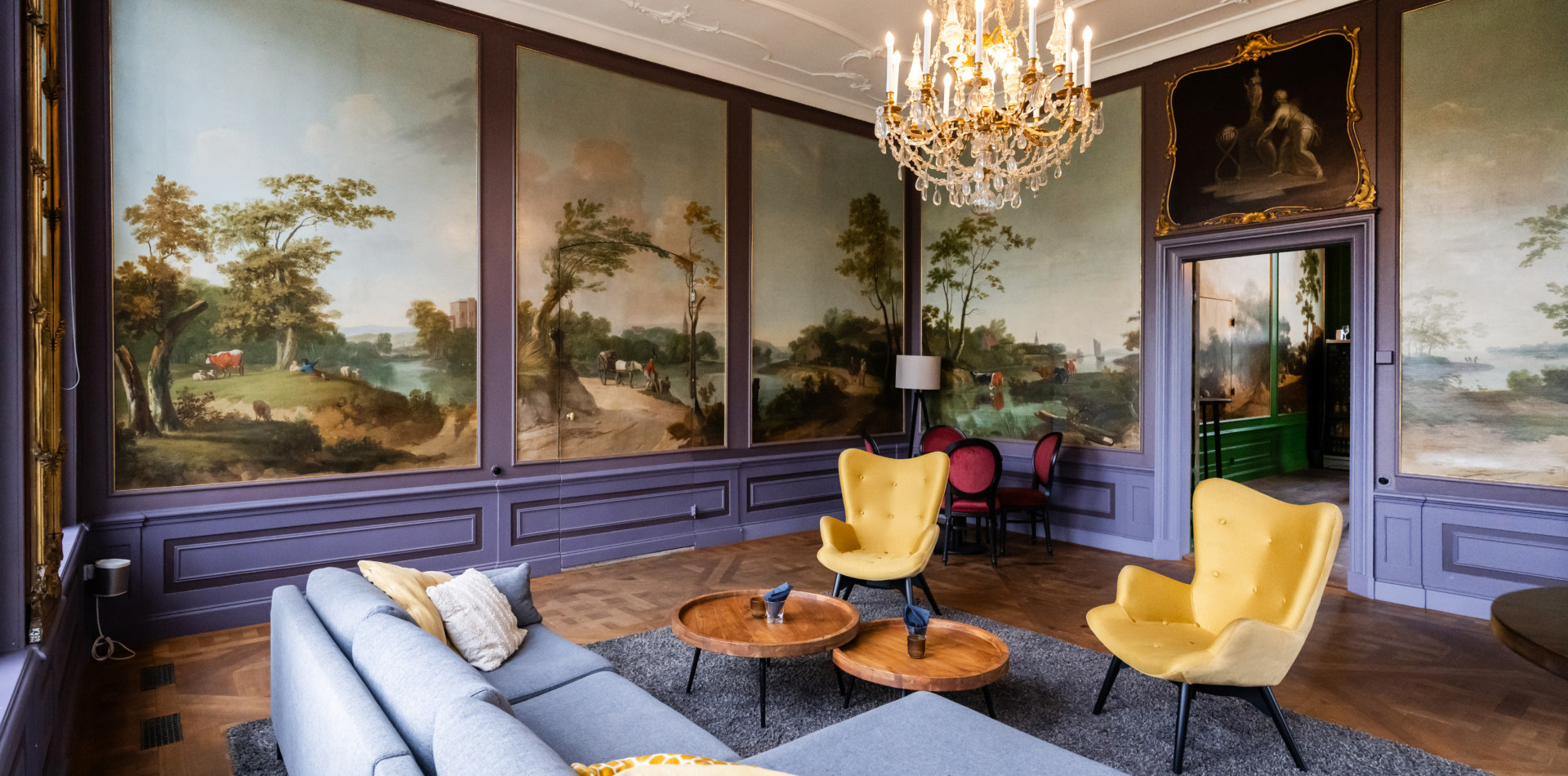 De lounge heeft een fijne, huiselijke sfeer waar gasten zich ten alle tijden even kunnen terugtrekken. Een lichte ruimte met prachtige wanddecoratie gelegen op de bel-etage van ons landhuis.